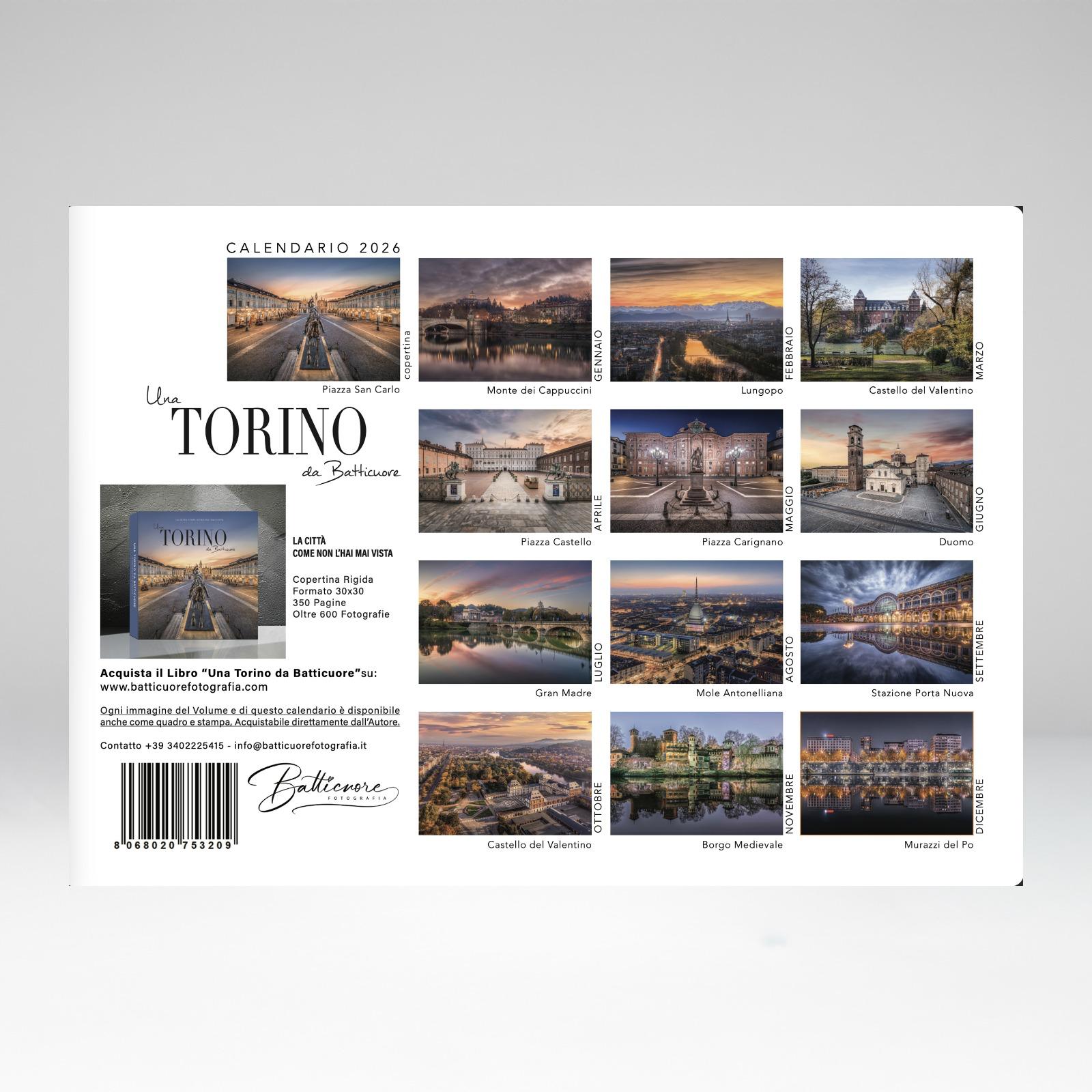Realizzato con immagini suggestive della città, questo calendario è un omaggio ai luoghi simbolo e alle atmosfere che rendono Torino unica: dalle piazze eleganti ai panorami mozzafiato sulla Mole Antonelliana.
